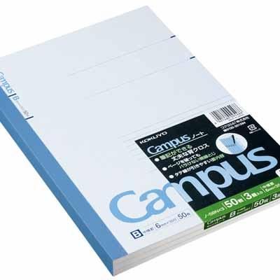 コクヨ キャンパスノート B罫(中横罫) セミB5 罫幅6mm 50枚 3冊パック ノ-5BNX3