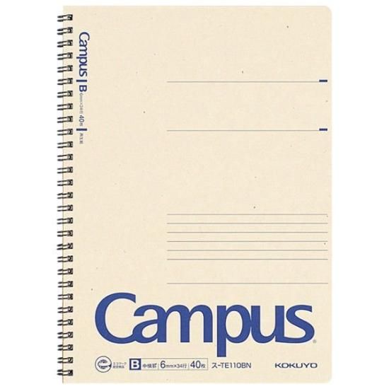 コクヨ キャンパス 再生紙ツインリングノート セミB5(6号) 罫幅6mm 40枚 ス-TE110BN