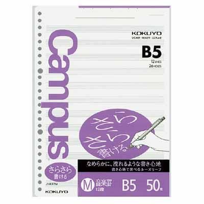 キャンパス ルーズリーフ さらさら書ける B5(26穴) 音楽罫12段 50枚 ノ-837M