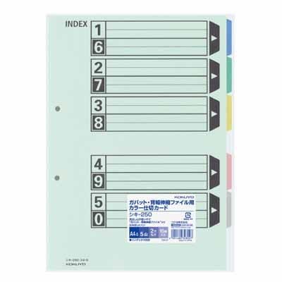 コクヨ カラー仕切カード(GF用) A4縦 5山+扉紙 2穴 10組入 シキ-250