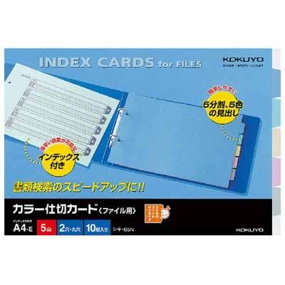 コクヨ カラー仕切カード(ファイル用) A4横 5山+扉紙 2穴 10組入 シキ-65