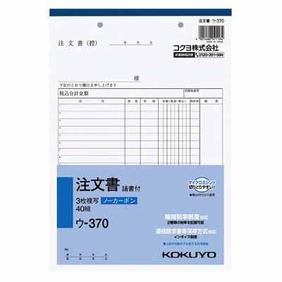 コクヨ NC複写簿 3枚注文書(注文請書付) B5縦 2穴80mmピッチ19行 40組 ウ-370