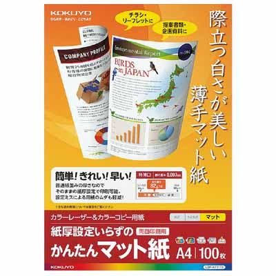 コクヨ LBP&カラーPPC用かんたんマット紙 特薄口 A4 100枚 LBP-KF1110