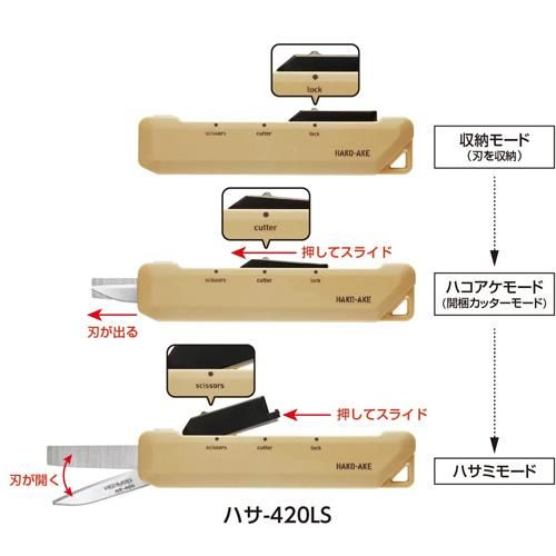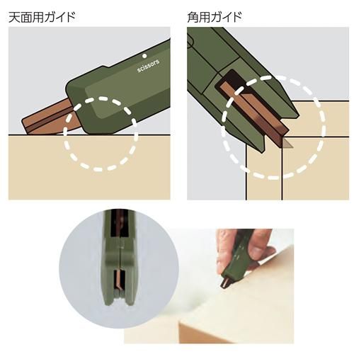 ハサミの刃を閉じたまま段ボールの開梱ができます。